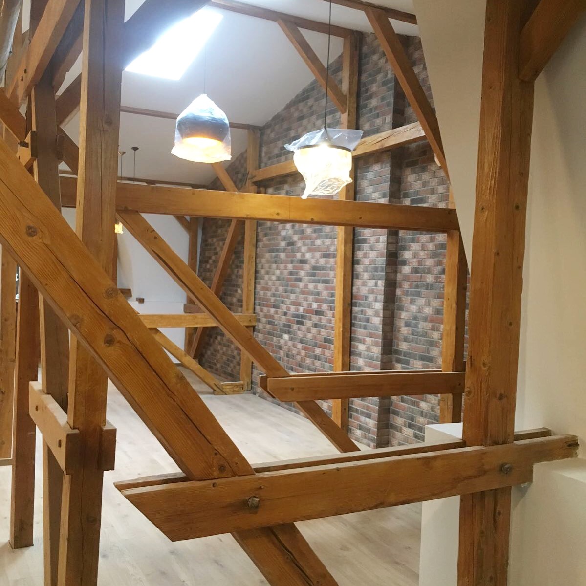 Din punct de vedere tehnic, pereții au fost întăriți din cauza deteriorării cărămizilor din construcția inițială. Însă farmecul vintage rămâne. Am păstrat grinzile din acoperiș dar le-am recondiționat și ignifugat. Elementele pe care am contat au fost cele pe care le-am regăsit deja aici, ferestrele cu arcadă dar și cele în acoperiș montate ulterior și grinzile din lemn vechi. Toată intervenția noastră ajută la reconstituirea a tot ceea ce înseamnă vechi și frumos, ambianța unică a unei astfel de încăperi. Mansarda va găzdui un birou unic, chiar în centrul Bucureștiului.