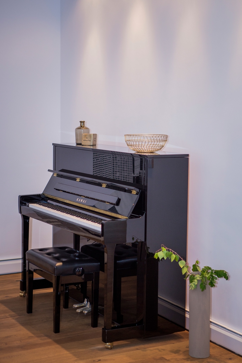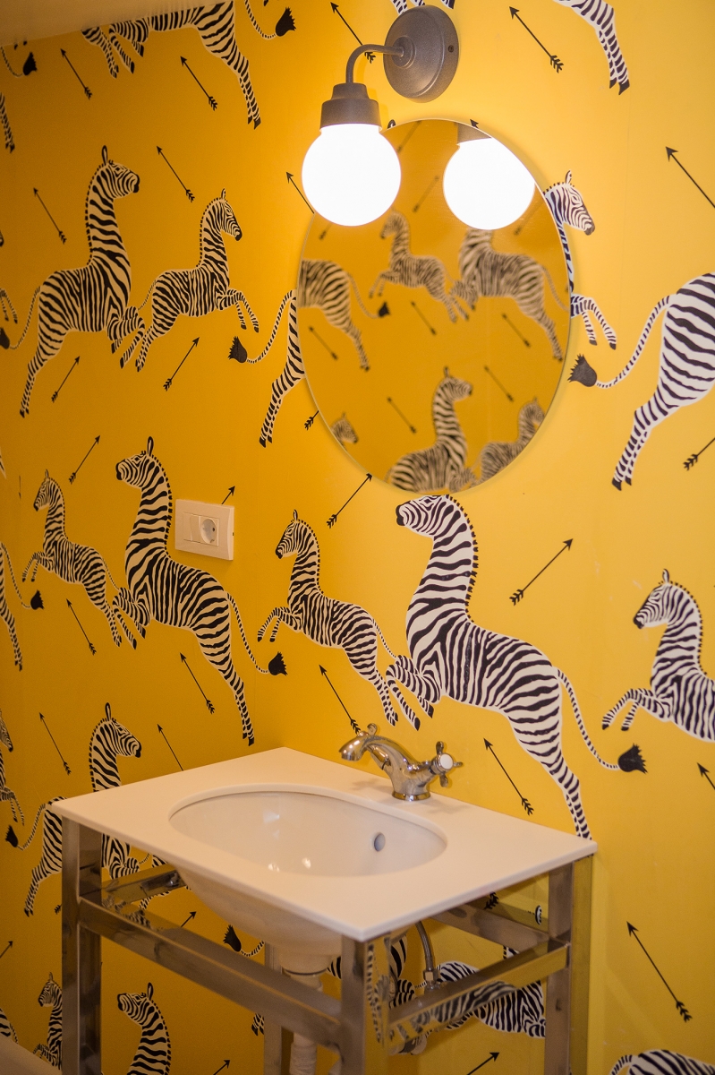 Pereții au fost șlefuiti cu grijă, pentru a obține efectul dorit dat de lavabila Benjamin Moore, aplicată în două straturi. Plăcile ceramice în băi au fost montate cu rost de 1mm, îmbinările lor la un unghi de 45 de grade obținându-se, astfel, efectul dorit de către arhitect.