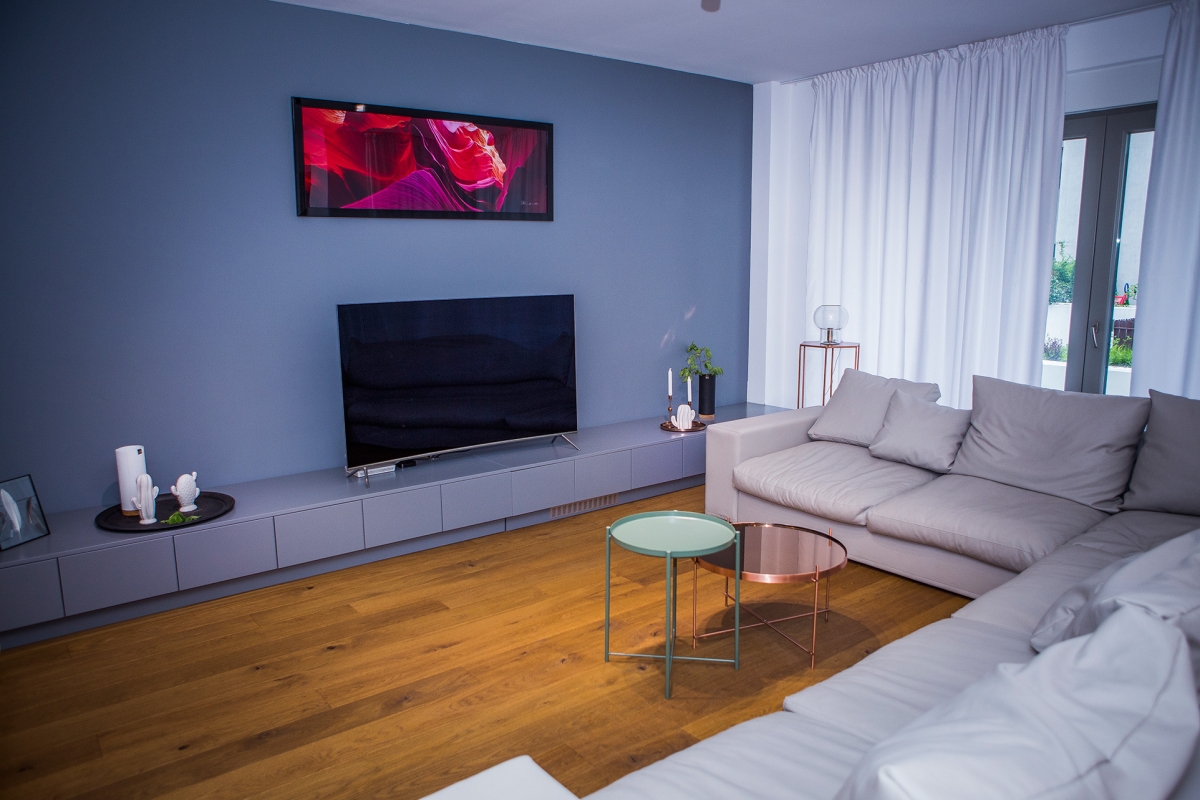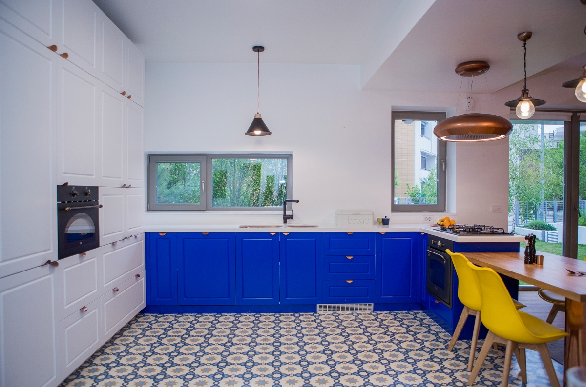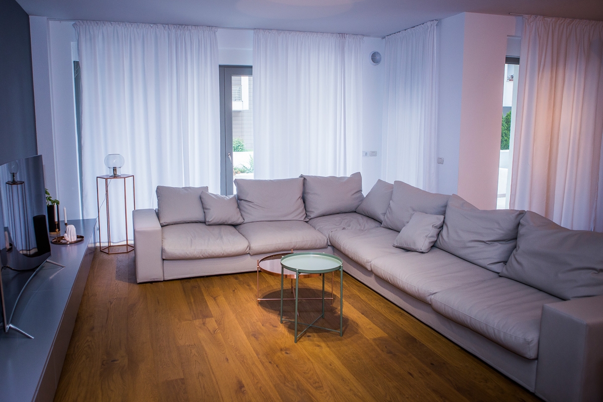 Achiziționat în anul 2017, acest apartament de 90 mp a atras prin compartimentare, fiind decomandat având dubla orientare și ferestrele mari. Nu s-au făcut modificări de compartimentare, însă am intervenit asupra instalațiilor și finisajelor. Pentru acestea din urmă, arhitecții de la Idecorate au ales să colaboreze cu prietenii noștri de la Delta Studio. Întregul proces al amenajării s-a desfășurat în patru etape, începând cu decopertare și demolare. Am acționat cu atenție pentru a nu afecta pereții ori șapa sau chiar vecinii, iar în aproximativ o săptămână aveam un spațiu curat și încăpător pregătit pentru lucru.