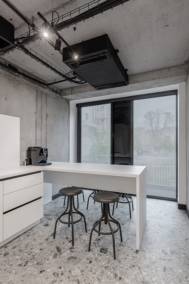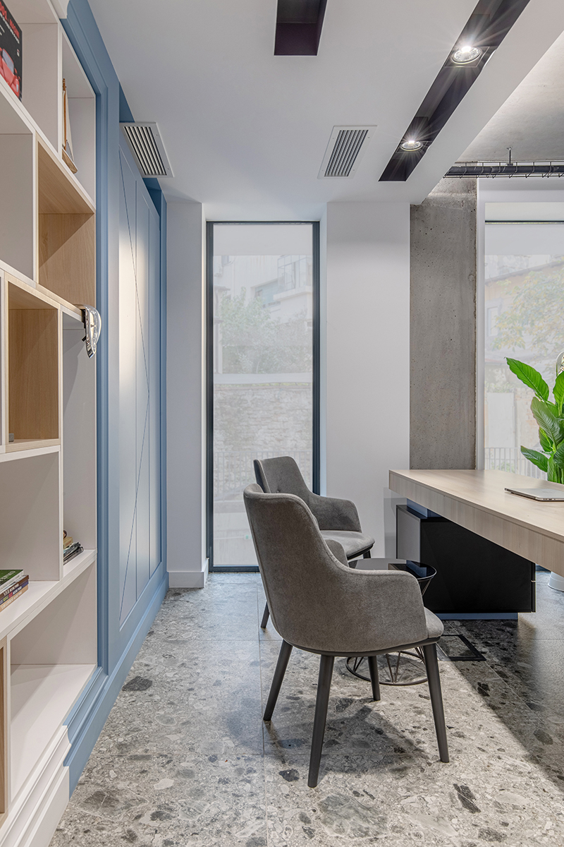 Direcția de amenajare aleasă de designeri a vizat integrarea organică a celor trei tipuri de servicii într-un decor contemporan.