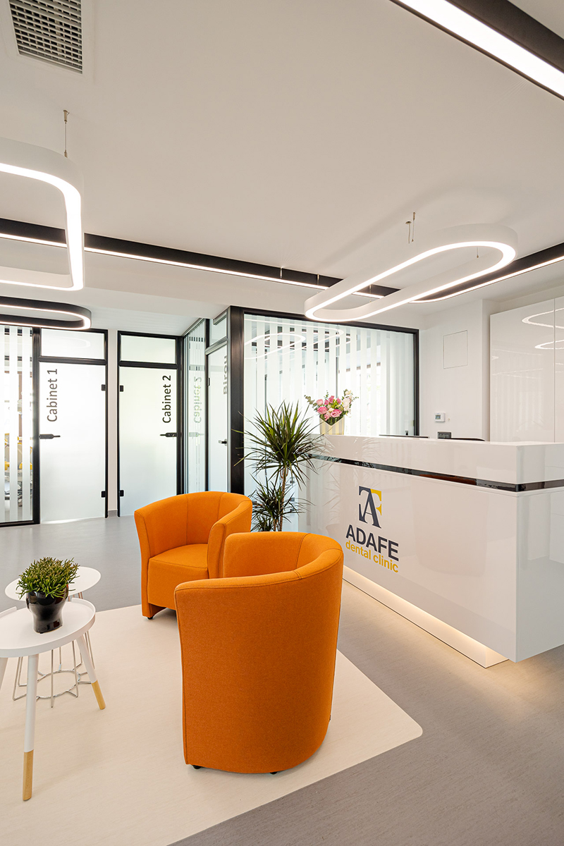 Clinica, numită Adafe Dental Clinic, cuprinde două cabinetele și o cameră de sterilizare, o sală de așteptare luminoasă, un birou, dar și alte două încăperi destinate personalului.
